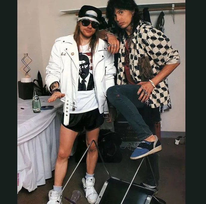 Believe it or not, Aerosmith were a good influence on G N’ R, who had agreed to substance-ly change their behavior when the Aero boys were present.
