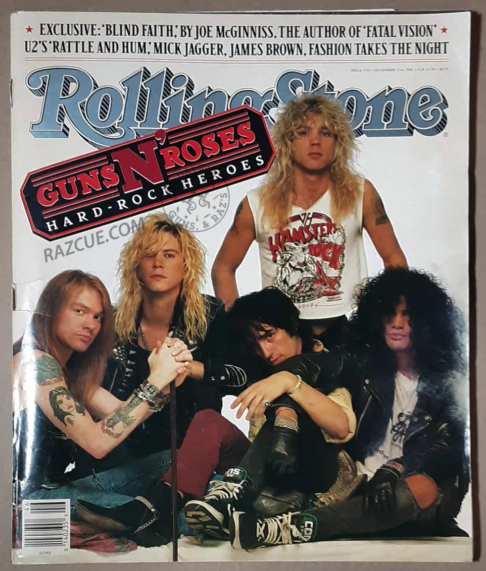 The rest of the band began meandering into the conference room about a half an hour after I got there. I think their minds were blown, as was mine, upon hearing the photo shoot was for the “Cover of the Rolling Stone.” The magazine was still relevant, and everyone was fully aware of how big a deal the cover was. Naturally, we were all thrilled, and goofed around while sporadically singing Dr. Hook. After me and Steven returned from upstairs, photographer Timothy White fine-tuned his lighting by having G N’ R pose for a few Polaroid test shots. A little more than four years after seeing Izzy and Axl’s band at Madame Wong’s West, I sat in a conference room at the Lowes Glenpointe in Teaneck, New Jersey, sipping cocktails while my buddies posed for the cover of Rolling Stone.