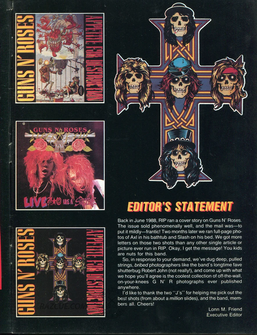 After months of relentless touring, G N’ R earned themselves a little time off. At the start of 1988, they returned to Hollywood as conquering heroes and were without a doubt the new band with the biggest buzz in the business. But in a flash, they were on the road again for most of February, headlining large theaters and earning far more money than opening for arena acts.